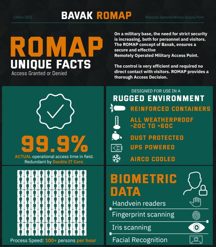 The ROMAP system has been operational since 2016. In case you would like to know more about the ROMAP, please contact us at Bavak or download the brochure from the bottom of this page https://www.bavak.com/solutions/integrated-security/integrated-military-solution/
